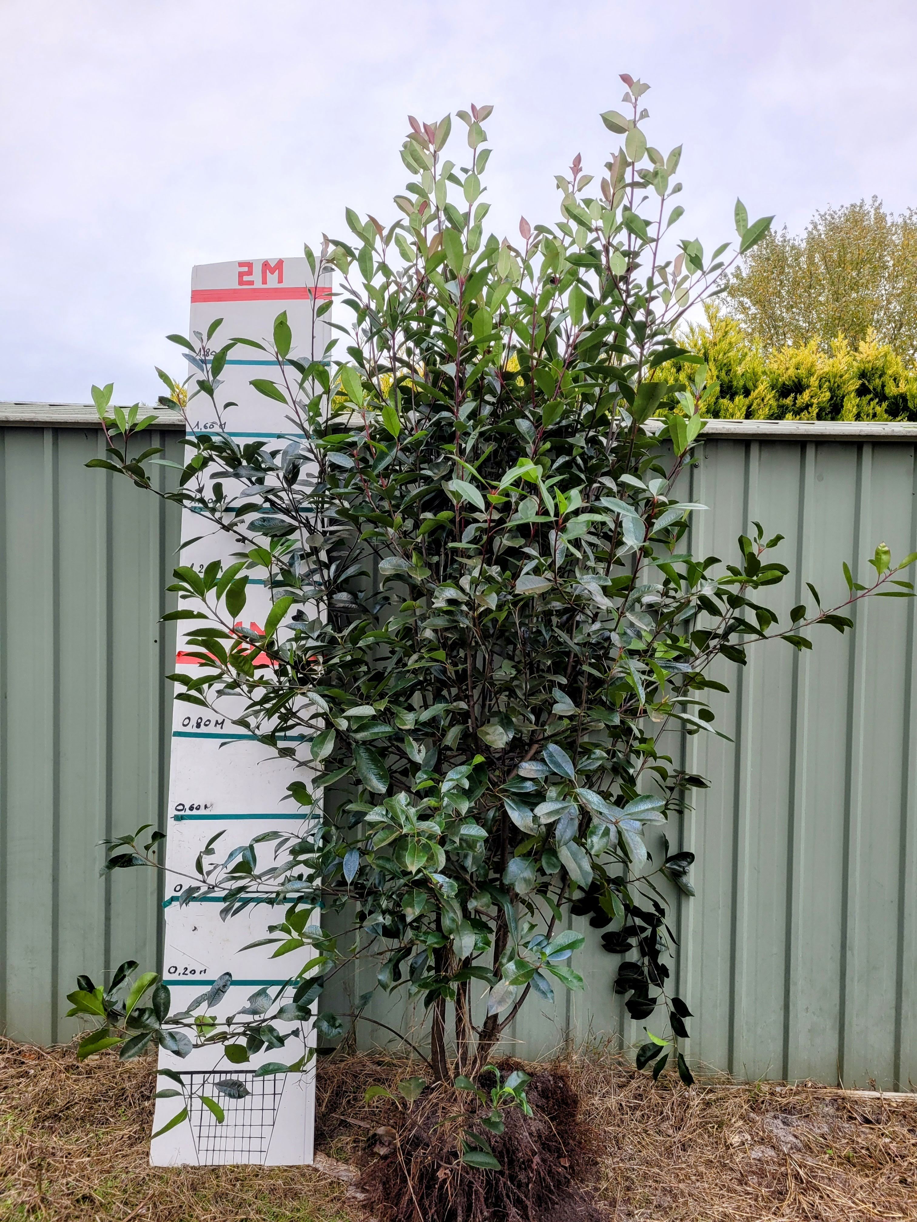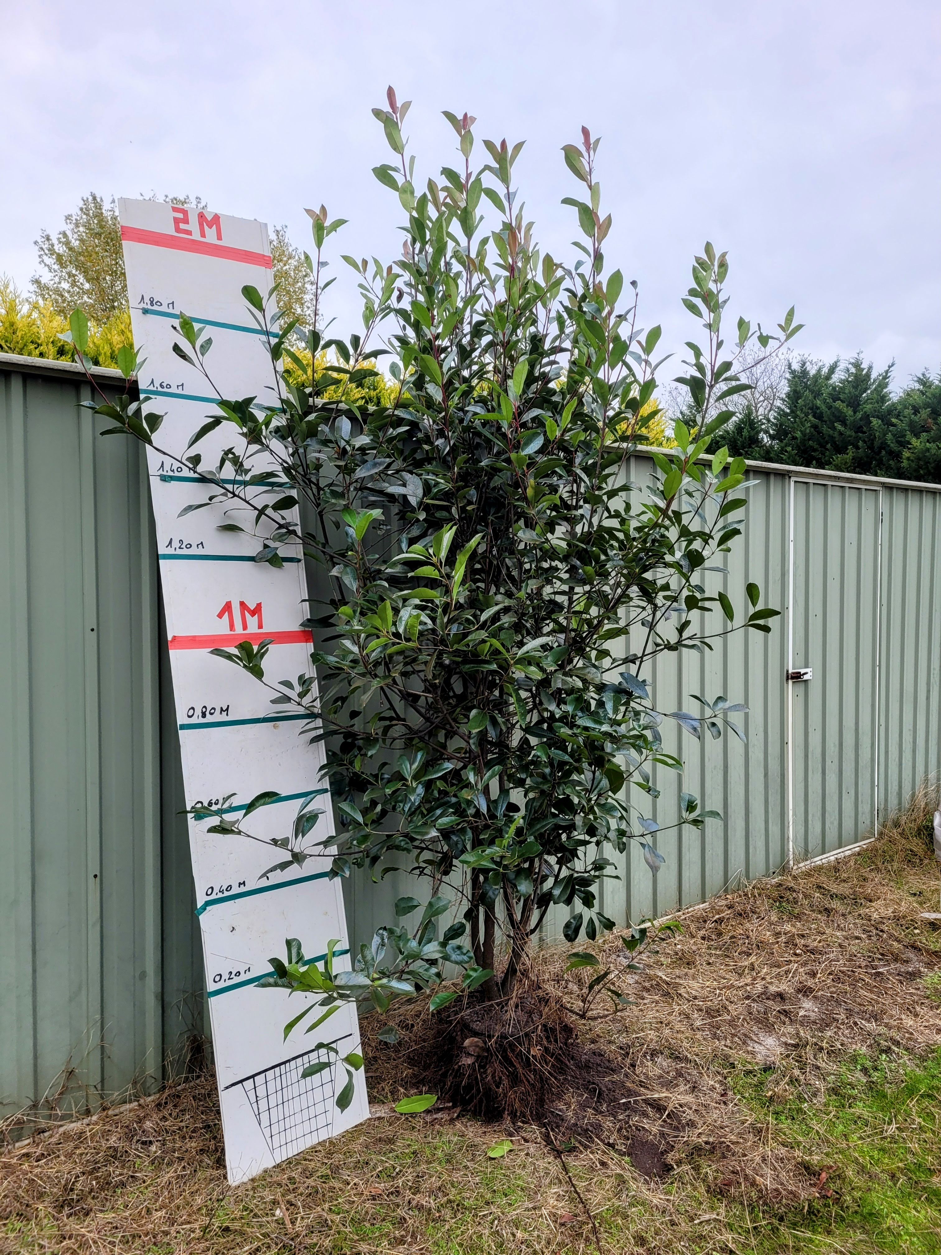 doit faire plus de de 2 mètre de hauteur. Taille du trou : La motte fait environ 30 cm X 30 cm X 30 cm Pour vos trous si la terre est meuble cela suffit. Sinon il est préférable d'ameublir avant sur au moins 50 X 50 cm et de percer l'alios si présent à moins de 50 cm . Attention ne pas planter là ou la plante