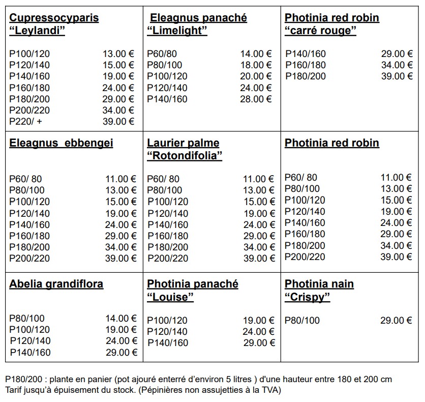 Conseils pour la plantation : Distance entre les plants : Il n'y a pas de règle précise et on peut faire ce que l'on veut entre 60 cm et 2 mètres si on veut "fermer" La différence étant le nombre de plants et le délai avant que la haie se ferme . Dans la pépinière à Commensacq